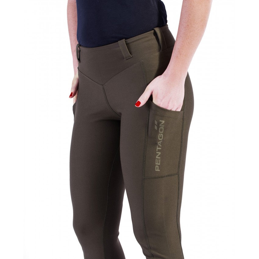 Športové dámske legíny od výrobcu Pentagon Tactical. Materiál je rýchlo-schnúci. Pás je strečový a obsahuje aj pútká na opasok (vhodné aj pre širšie taktické opasky).