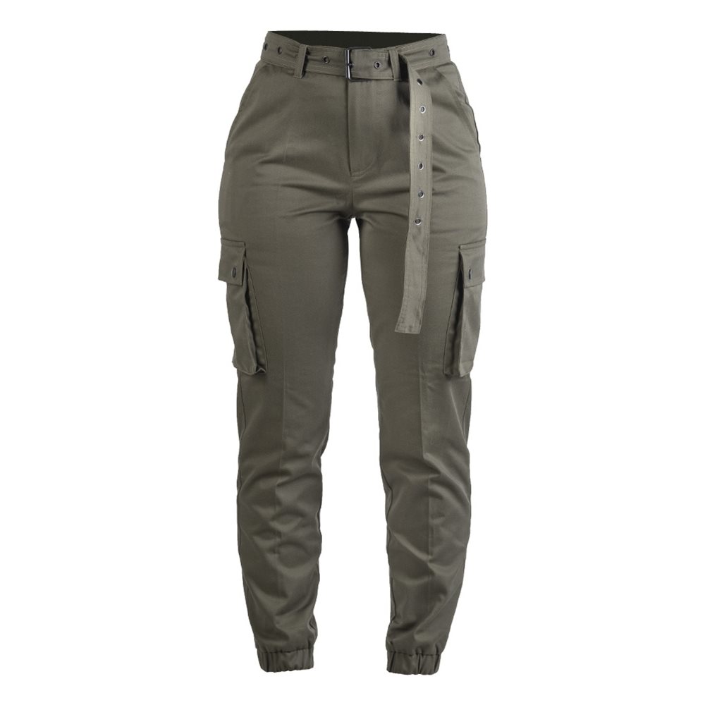 Pantaloni damă Army stil Slim-Fit cu talie înaltă. Design plăcut, material rezistent și curea detașabilă inclusă.