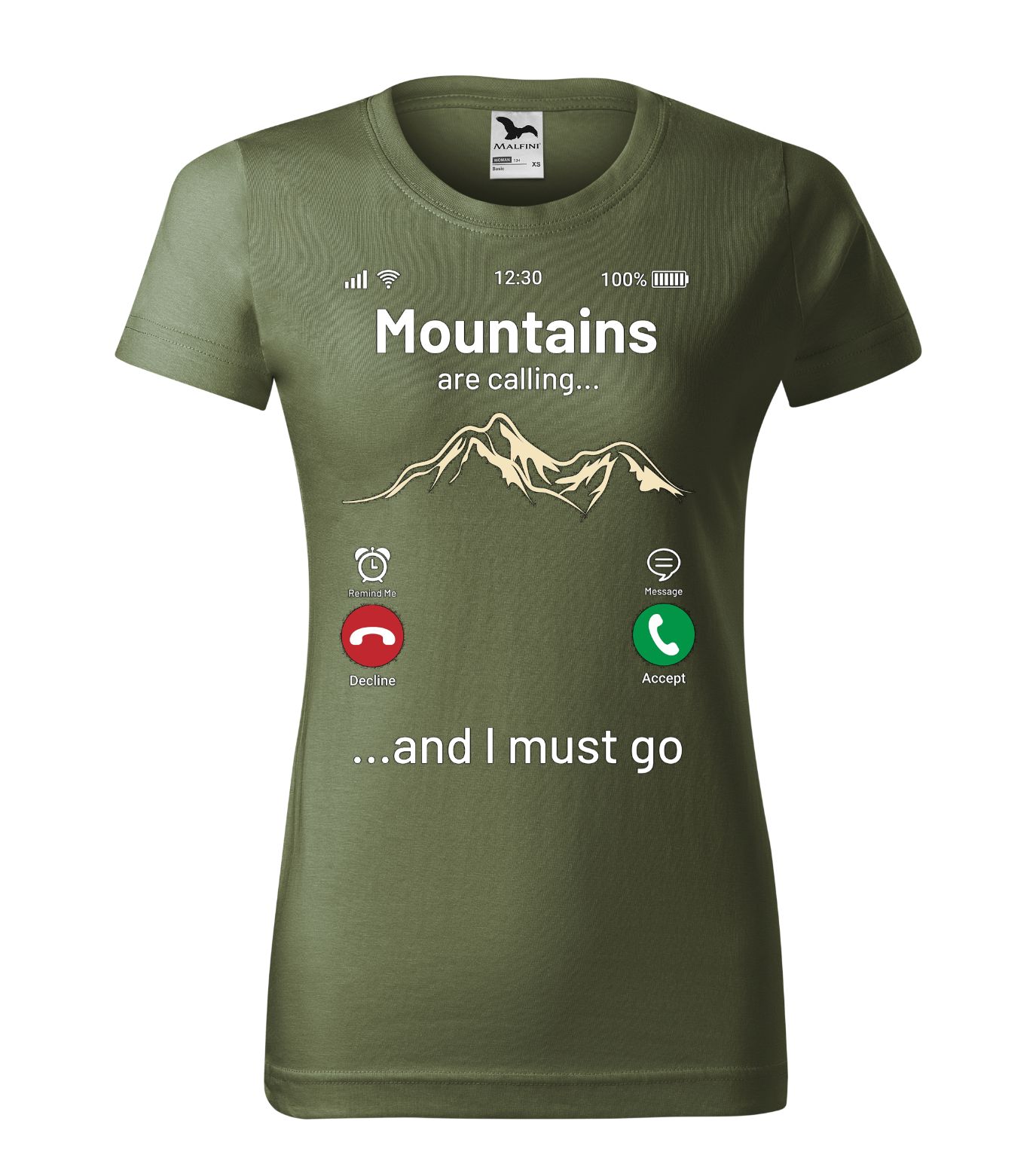 Pe partea din față se află un imprimeu original care reprezintă ecranul unui smartphone cu un apel primit: „Mountains are calling … and I must go” („Munții mă cheamă și trebuie să merg”).