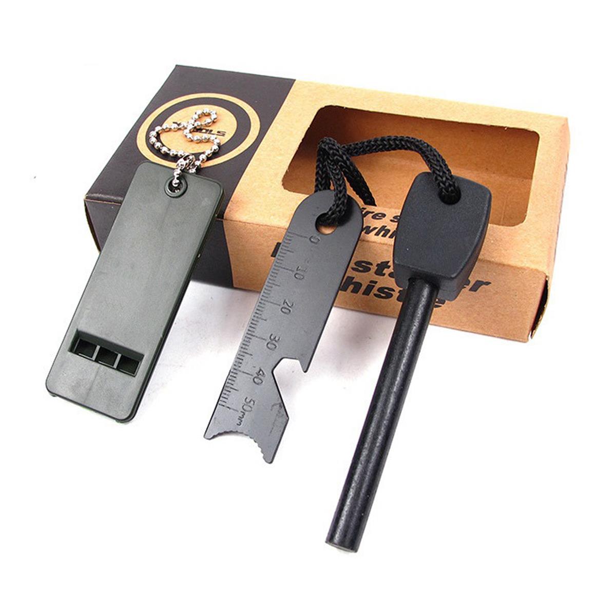 Amnar cu magneziu puternic și eficient. Tija pentru scântei include o riglă cu deschizător de sticle. Setul conține și un fluier.