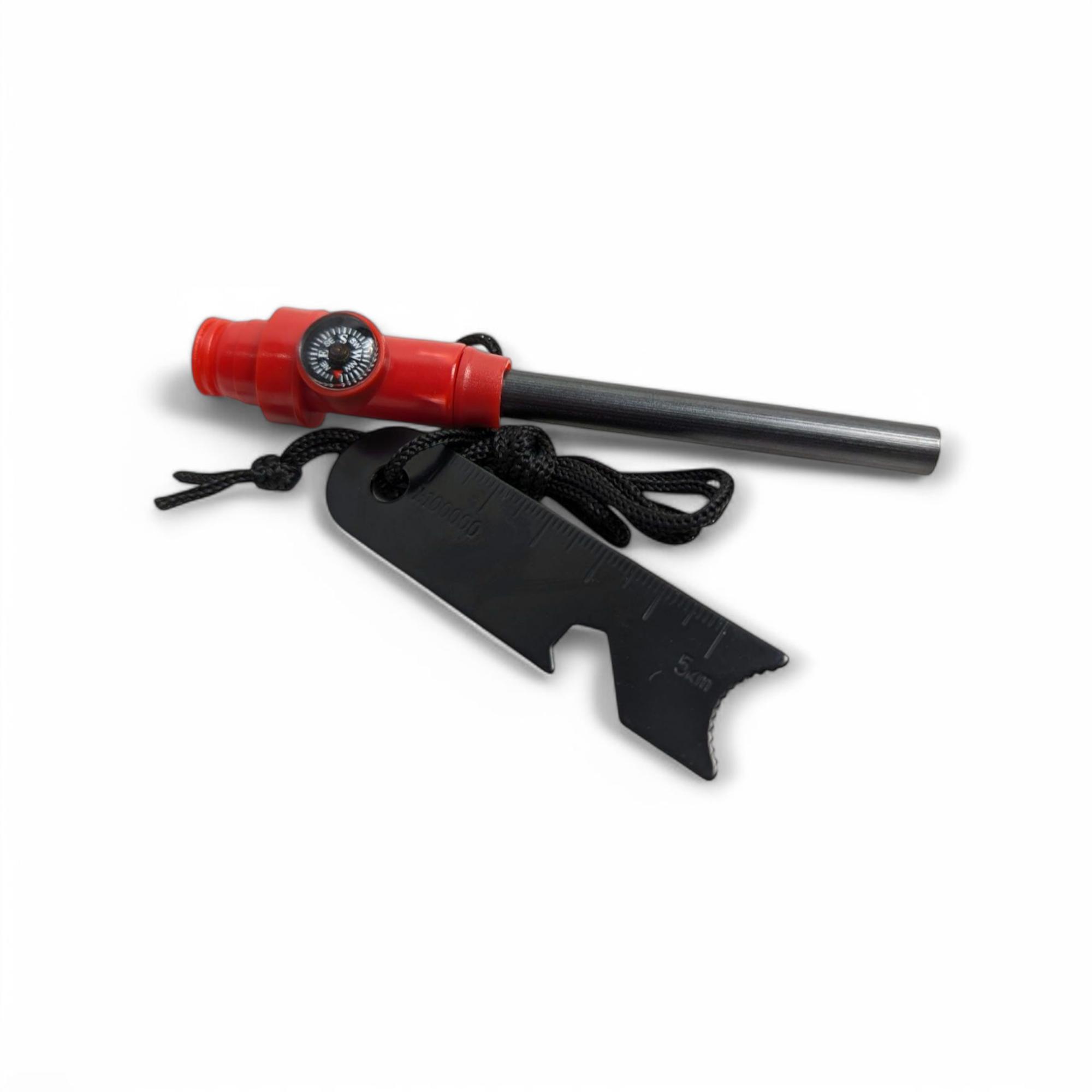 - design 5v1 (amnar, riglă, deschizător de sticle, busolă, fluier)