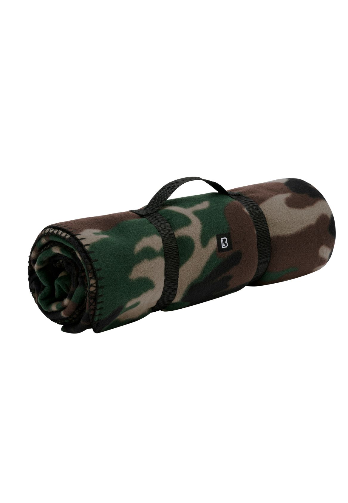Maskáčová deka Brandit s transportným popruhom. Hrejivý materiál. Produkt je ako stvorený na kemping, či piknik.