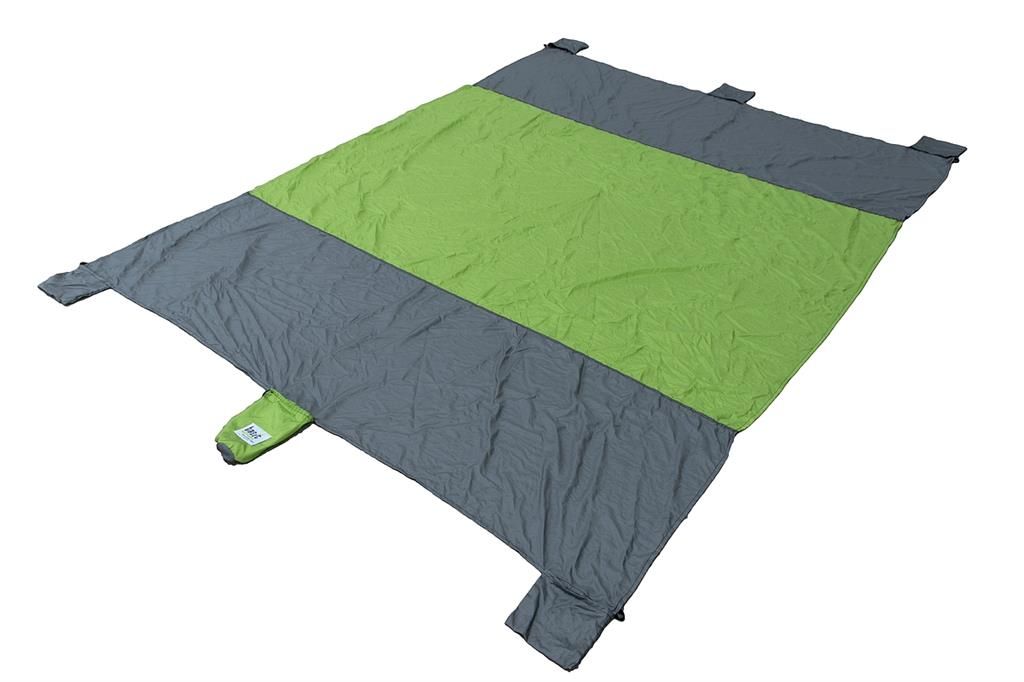 Skladacia pikniková, či plážová deka. Je balená v kompresnom obale. Deka je dizajnovaná najmä na použitie na pieskové pláže - pocítite mäkkosť piesku, no zároveň od neho nebudete špinavý a nedostane sa Vám do prípadnej desiaty a pod. Na okrajoch sú malé vrecká. Dajú sa naplniť pieskom, čo deku zaťaží a bude rozprestretá na pláži aj pri silnejšom vetre.