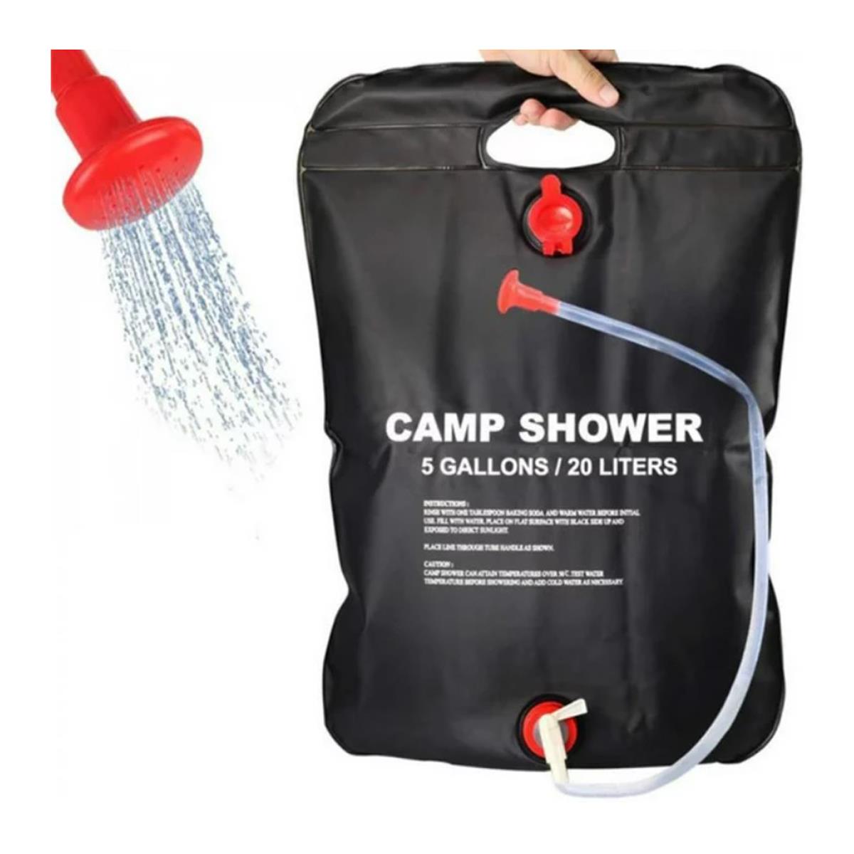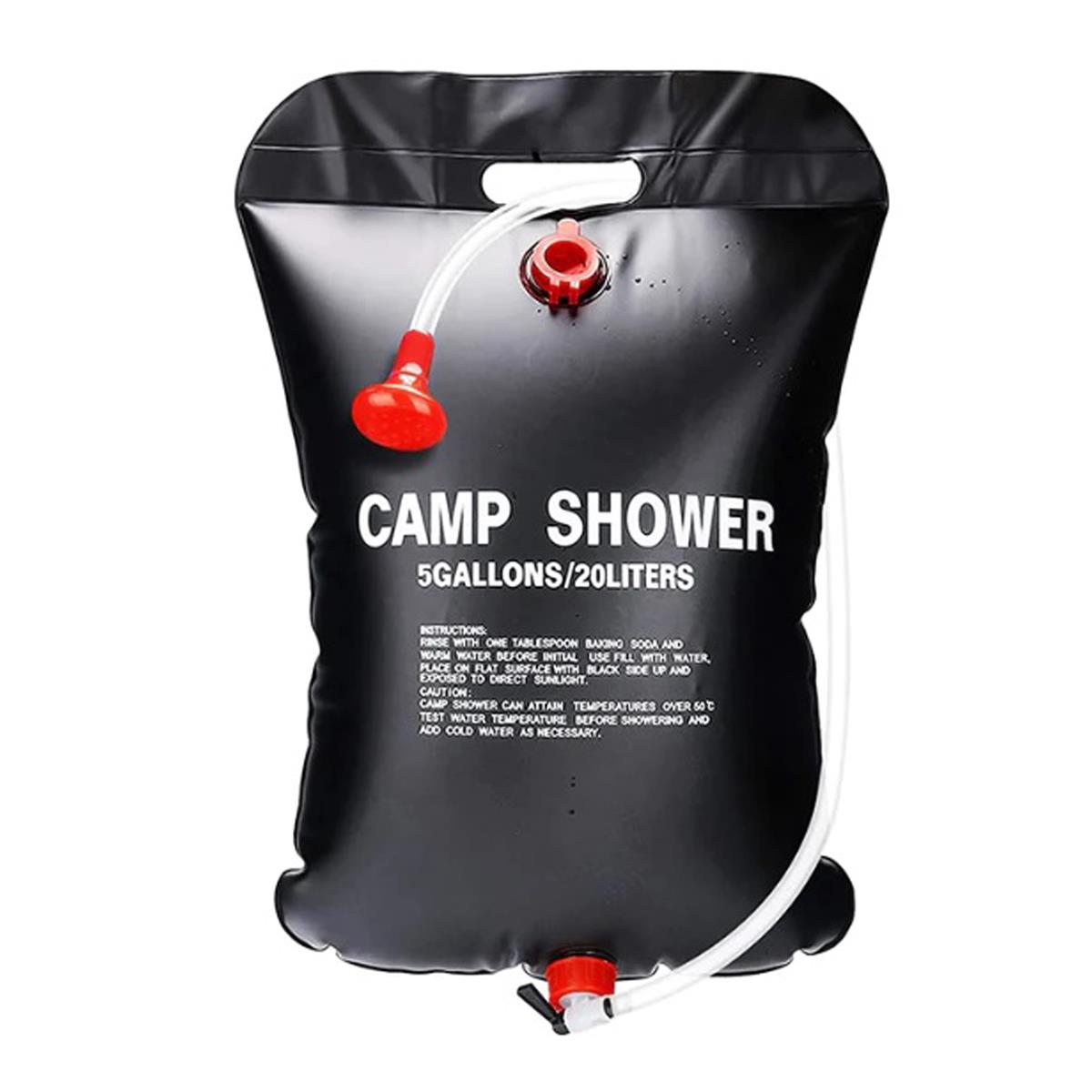Materialul este de culoare neagră, ceea ce face ca apa să se încălzească și mai repede. Condițiile pentru încălzire sunt aproximativ 20°C la soare direct timp de aproximativ 2 ore. Apa se încălzește la aproximativ 35°C, în funcție de condiții. Dușul este livrat cu un ventil, furtun și cap de duș, precum și cu o sfoară de nilon.