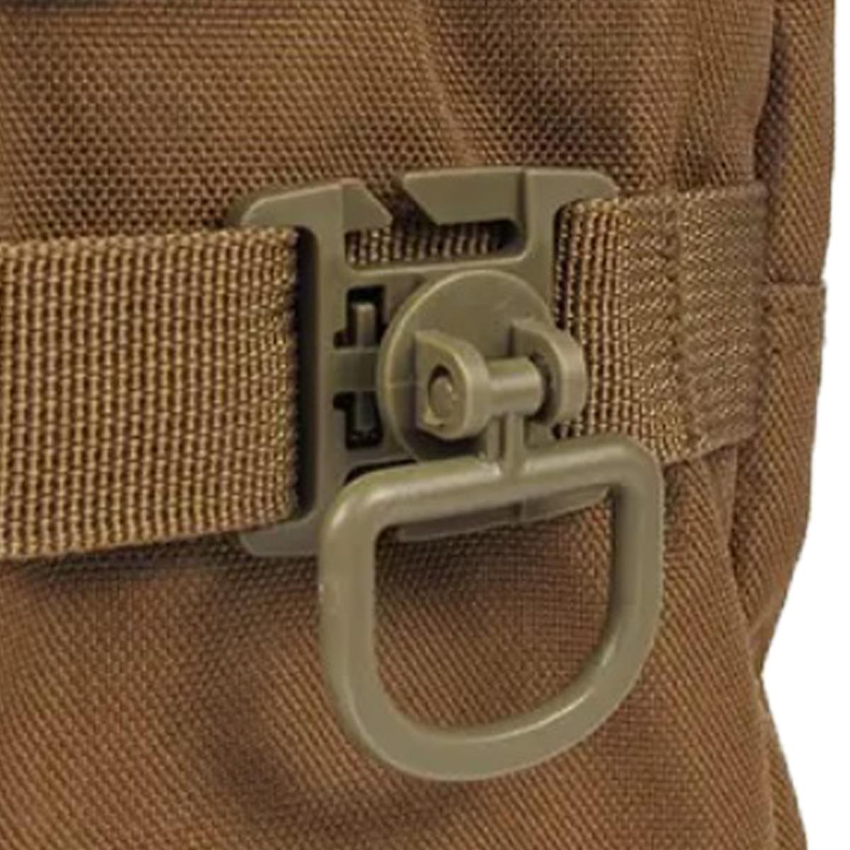Inelul D pentru sistemul MOLLE poate fi atașat cu ușurință la rucsac, vestă tactică și pe el pot fi agățate accesorii mici.