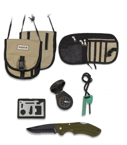 Set practic de accesorii utile pentru activități în aer liber. Include șnur pentru purtare la gât, pentru acces rapid și transport ușor.