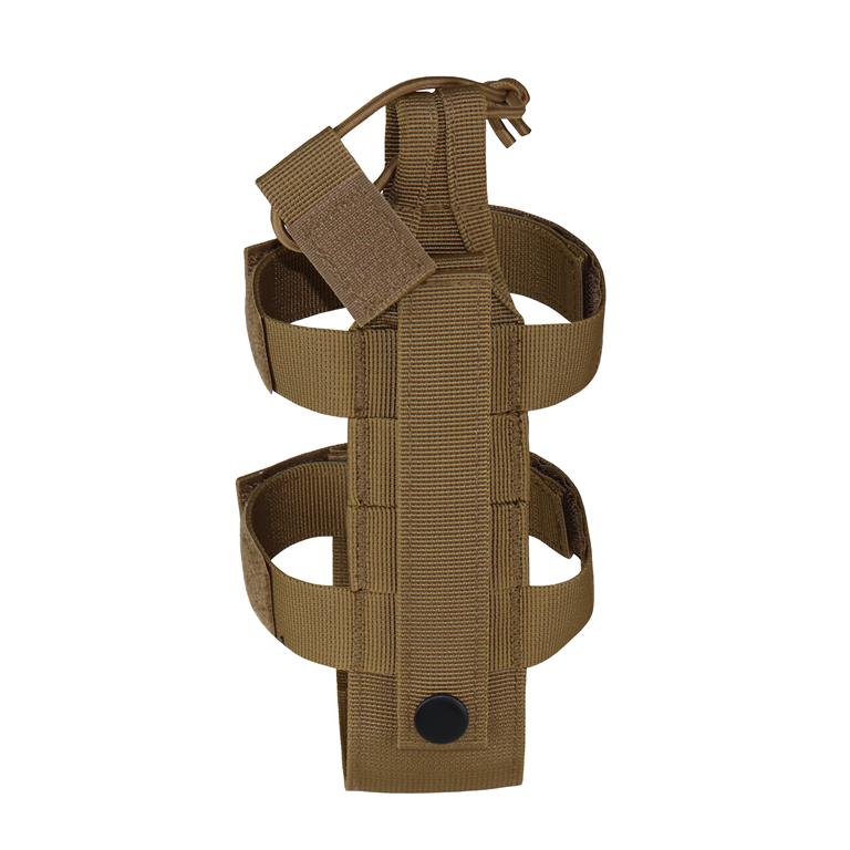 Husă practică MOLLE pentru sticlă, potrivită pentru călătorii, supraviețuire, camping, drumeții sau utilizare zilnică. Sticla este fixată datorită celor două curele reglabile cu velcro. Gâtul sticlei este fixat cu un șnur elastic.