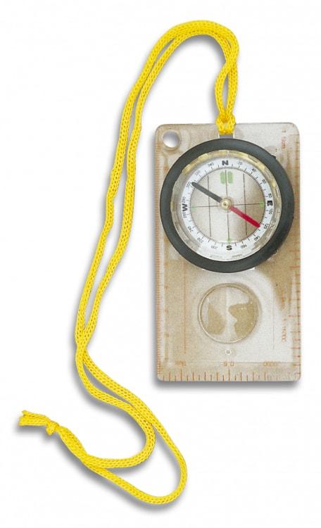 Busolă pentru uz recreativ, prevăzută cu lupă și scală pentru hărți. Include și șnur pentru agățare.