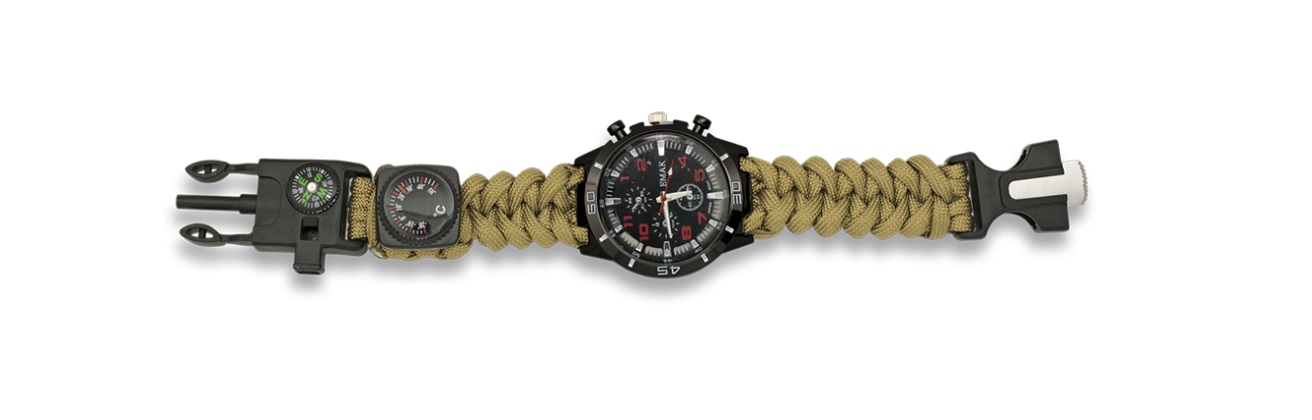 Ceas cu paracord Barbaric 6v1 survival coyote