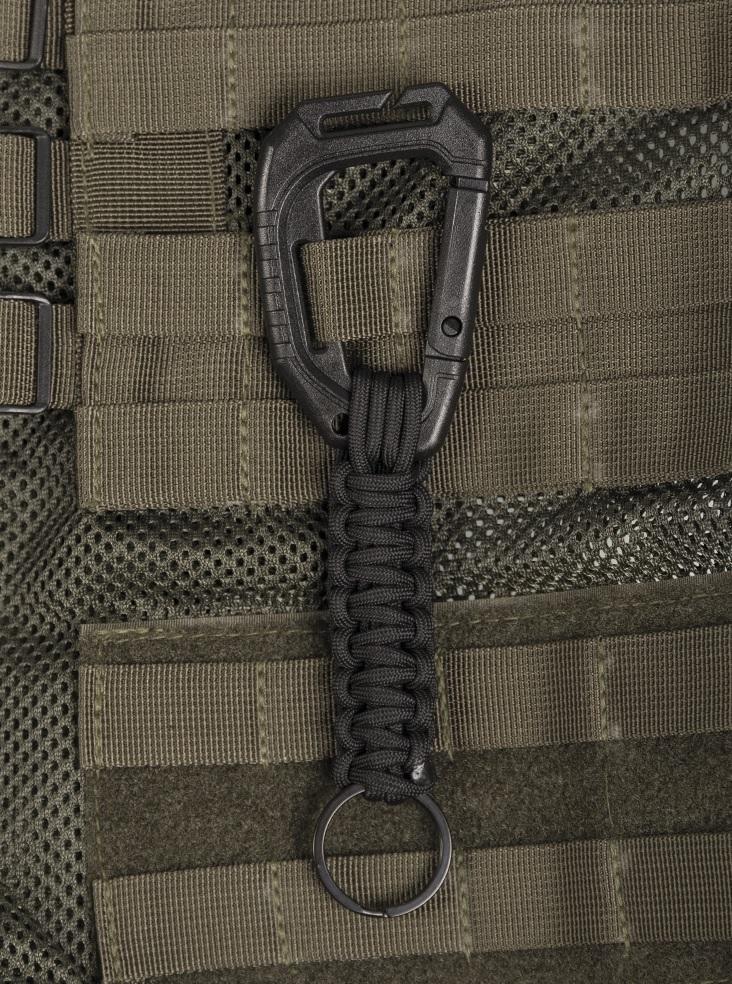 Carabinieră practică și cu design atractiv, prevăzută cu șnur din paracord împletit, terminat cu un inel tip „D”. Este destinată pentru agățarea cheilor, accesoriilor sau a multitool-ului, lanternei, pe rucsac, vestă tactică etc.