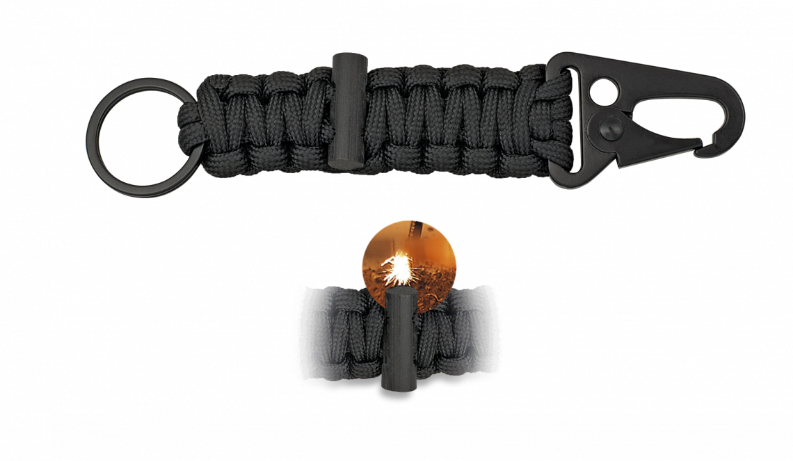 Clip outdoor tip carabină paracord cu amnar neagră