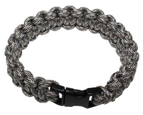 Brățară împletită cu clips din plastic. Un accesoriu stilat, care poate fi folosit și ca o frânghie utilă în natură.