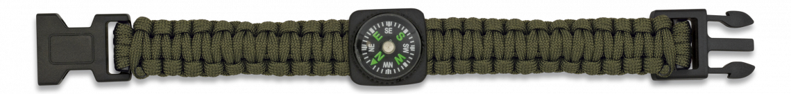 Brățară paracord prevăzută cu busolă integrată. În caz de nevoie, brățara poate fi desfăcută și transformată într-o frânghie de 2,5 metri, utilă în diverse situații outdoor.