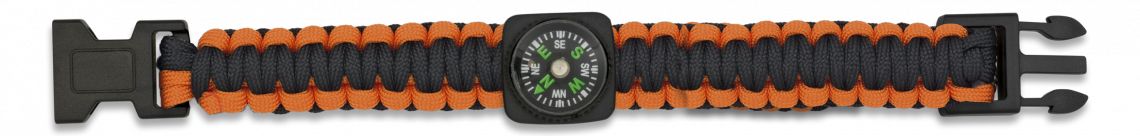 Brățară paracord cu busolă. Brățara paracord poate fi desfăcută și transformată într-o sfoară de 2,5m lungime.