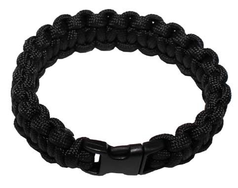 Brățară împletită cu clips din plastic. Accesoriu stilat, dar poate servi și ca frânghie utilă în natură.