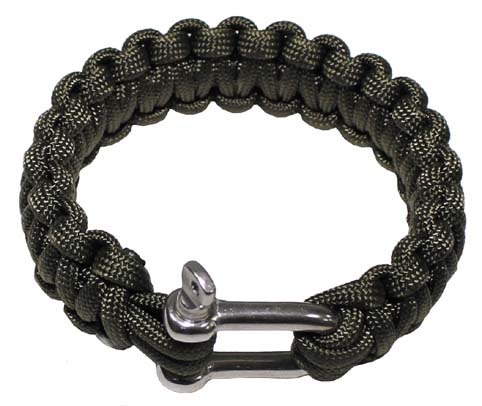 Zapletený náramok s kovovým klipom. Štýlový doplnok, no môže poslúžiť aj ako užitočné lano v prírode.