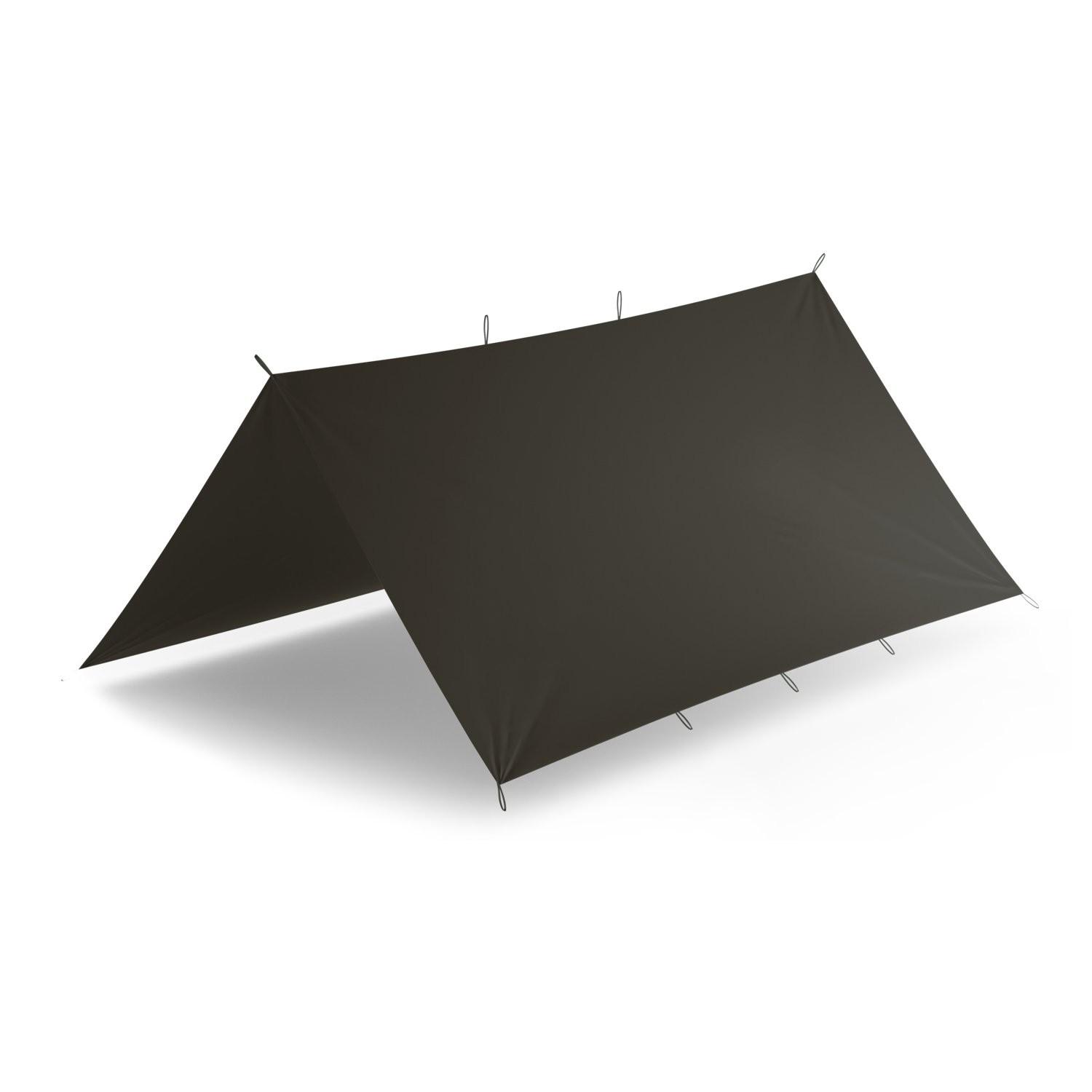 Este o foaie de cort de foarte bună calitate, care, datorită dimensiunilor sale de 3 x 3 m, este suficientă pentru acoperirea unui cort mai mare sau a paturilor suspendate. De asemenea, foaia de cort poate fi folosită ca adăpost independent (cu ajutorul unei structuri proprii sau a copacilor – bara din imagine este doar ilustrativă și nu este inclusă în pachet).