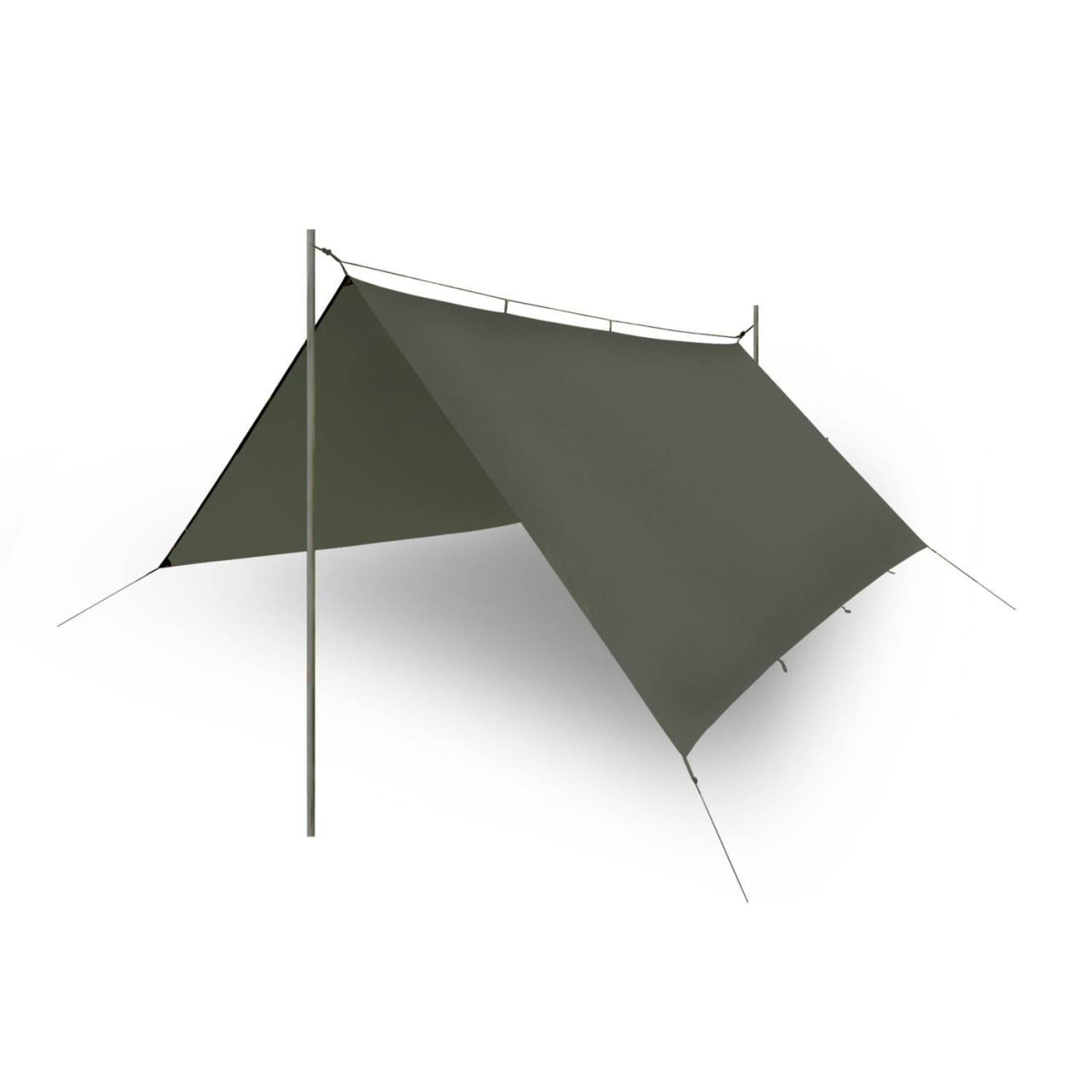 Este o prelată de foarte bună calitate, care, cu dimensiunile sale de 3x3m, este suficientă pentru acoperirea unui cort mai mare sau a paturilor suspendate. Prelata poate fi folosită și ca adăpost independent (cu ajutorul unei construcții proprii sau al copacilor - bara din imagine este doar ilustrativă, nu este inclusă în pachet).