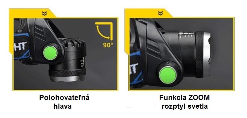 - Zoom funguje posúvaním hlavy čelovky