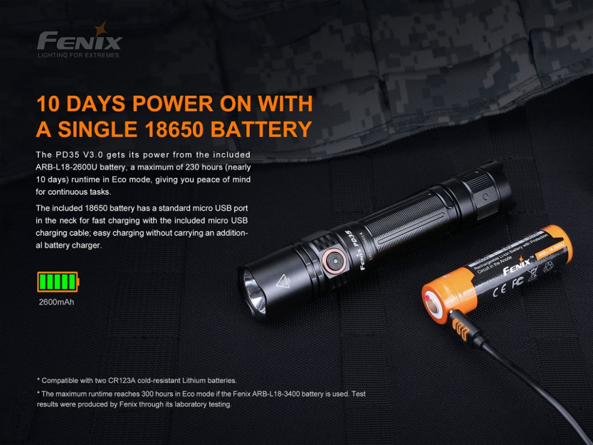 Toate testele privind durata de iluminare pentru fiecare mod au fost realizate cu acumulatorul Fenix 18650 cu o capacitate de 2600 mAh.