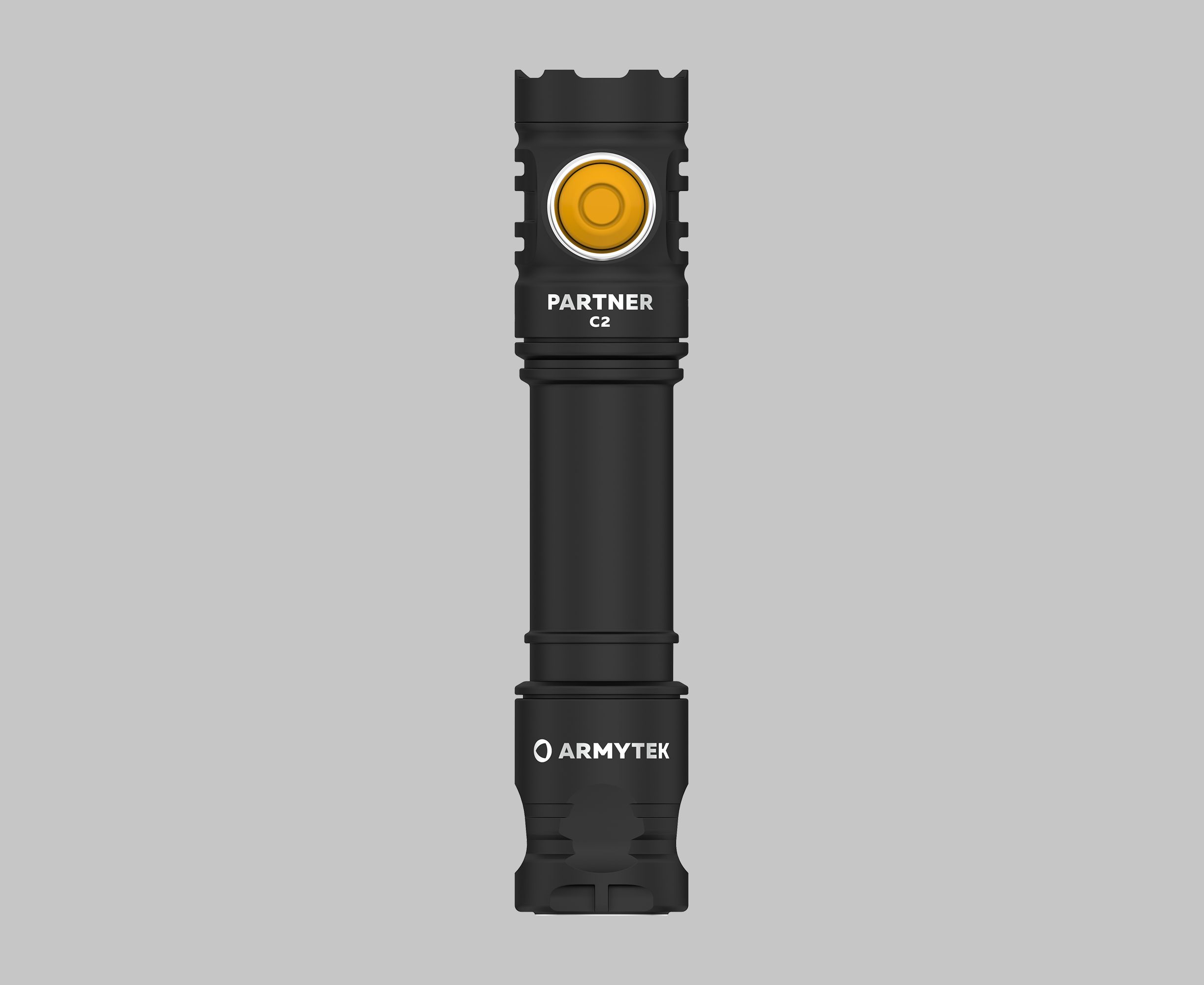 Lanterna tactică Armytek Partner C2 cu ton cald de lumină se aprinde și se stinge printr-un buton plat. Bateria inclusă se încarcă în 3h 20 min. Dacă temperatura lanternei crește peste 58°C, aceasta începe automat să reducă treptat puterea, ceea ce reprezintă o protecție inteligentă împotriva supraîncălzirii.