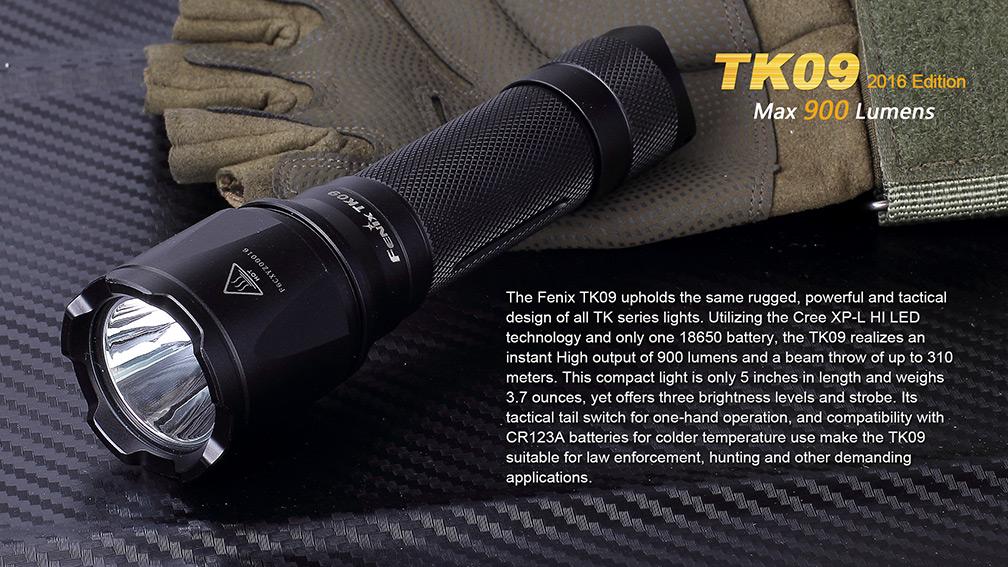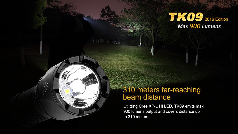 Lovecká baterka Fenix TK09 XP-L, ktorá poskytne maximálny svetelný tok až 900 lumenov. Vďaka špičkovej LED Cree XP-L HI (High Intensity) dosvieti až 310 metrov.
