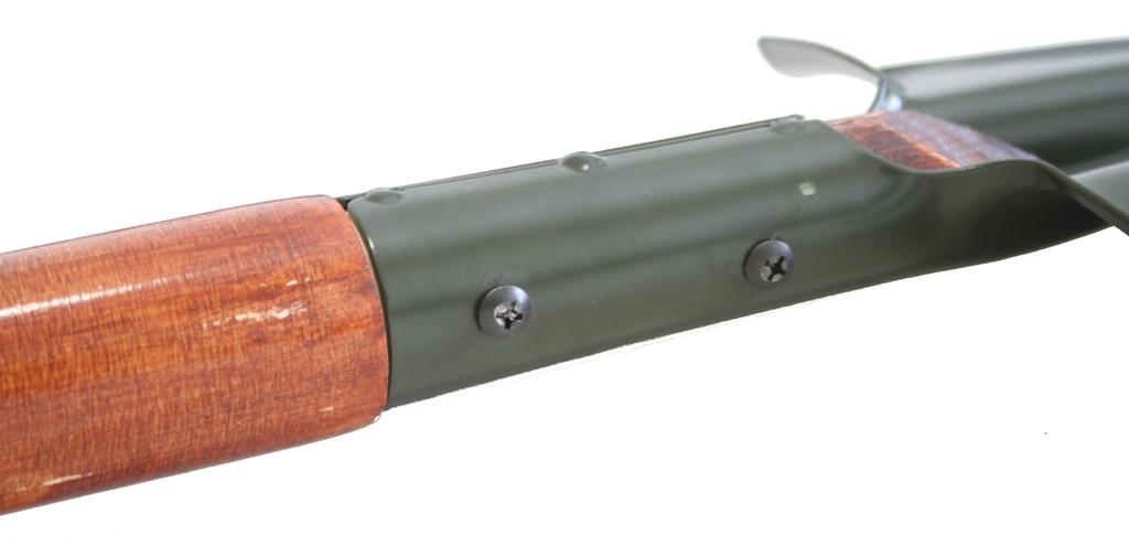 Praktická poľná lopatka (nie skladacia, ale pevná). Lopatka je dostatočne dlhá. Pracuje sa s ňou teda o niečo lepšie ako s bežnými kempingovými lopatkami, ktoré sú po väčšine menšie.