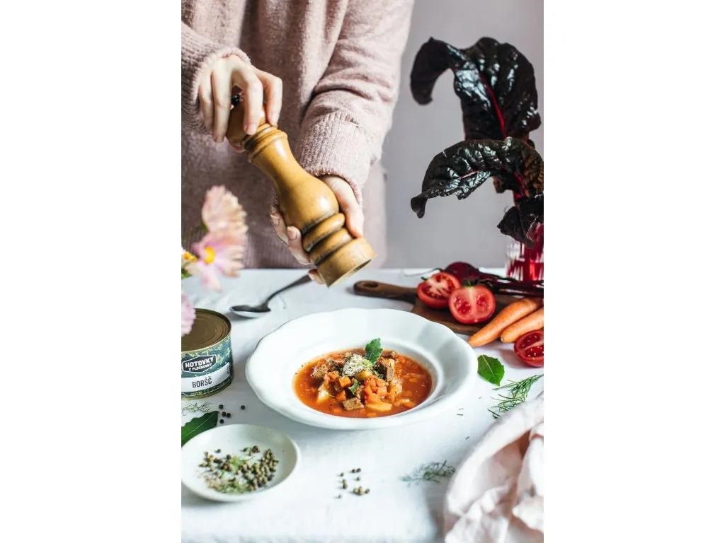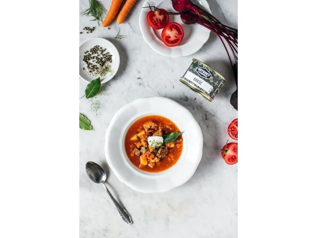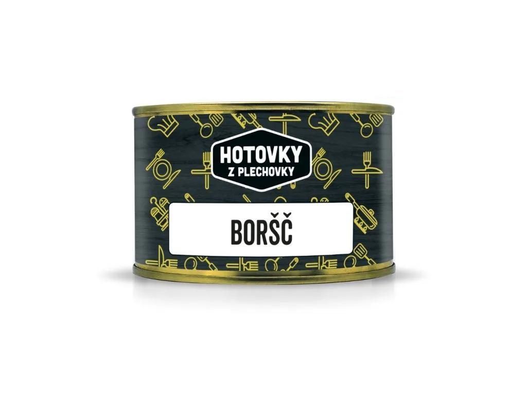Borș 400ml de la producătorul Hotovky din conservă. Alimentele au o valoare nutritivă echilibrată, prepararea lor durează doar câteva minute și se consumă direct din conservă, farfurie sau alt vas. Ideal pentru drumeții mai lungi, camping, pescuit, vânătoare și activități similare. În rucsac ocupă foarte puțin spațiu.