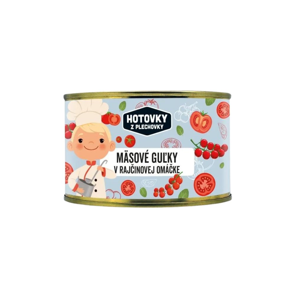 Chifteluțe în sos de roșii 400 g de la producătorul Hotovky z plechovky. Produsele alimentare au o valoare nutritivă echilibrată, prepararea lor durează doar câteva minute și pot fi consumate direct din conservă, din farfurie sau din alt vas. Sunt ideale pentru drumeții mai lungi, camping, pescuit, vânătoare și activități similare. În rucsac ocupă foarte puțin spațiu.