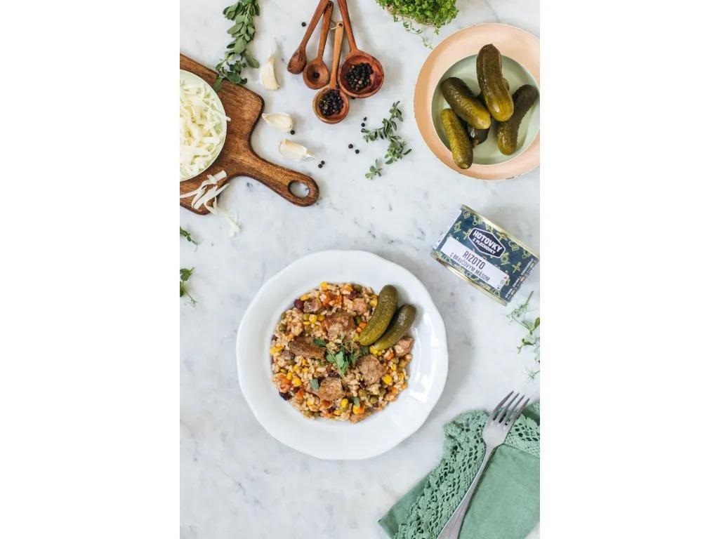 Risotto cu carne de porc 400g de la producătorul Hotovky z plechovky. Alimentele au o valoare nutritivă echilibrată, prepararea lor durează doar câteva minute și se consumă direct din conservă, farfurie sau alt vas. Ideal pentru drumeții mai lungi, camping, pescuit, vânătoare și activități similare. În rucsac ocupă foarte puțin spațiu.