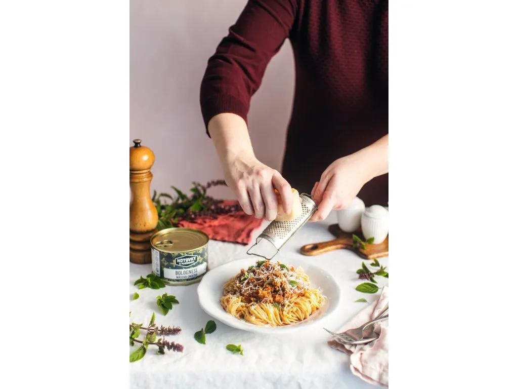 Sos Bolognese cu carne 400g de la producătorul Hotovky z plechovky. Alimentele au o valoare nutritivă echilibrată, prepararea lor durează doar câteva minute și se consumă direct din conservă, farfurie sau alt recipient. Ideal pentru drumeții lungi, camping, pescuit, vânătoare și activități similare. Ocupă foarte puțin spațiu în rucsac.