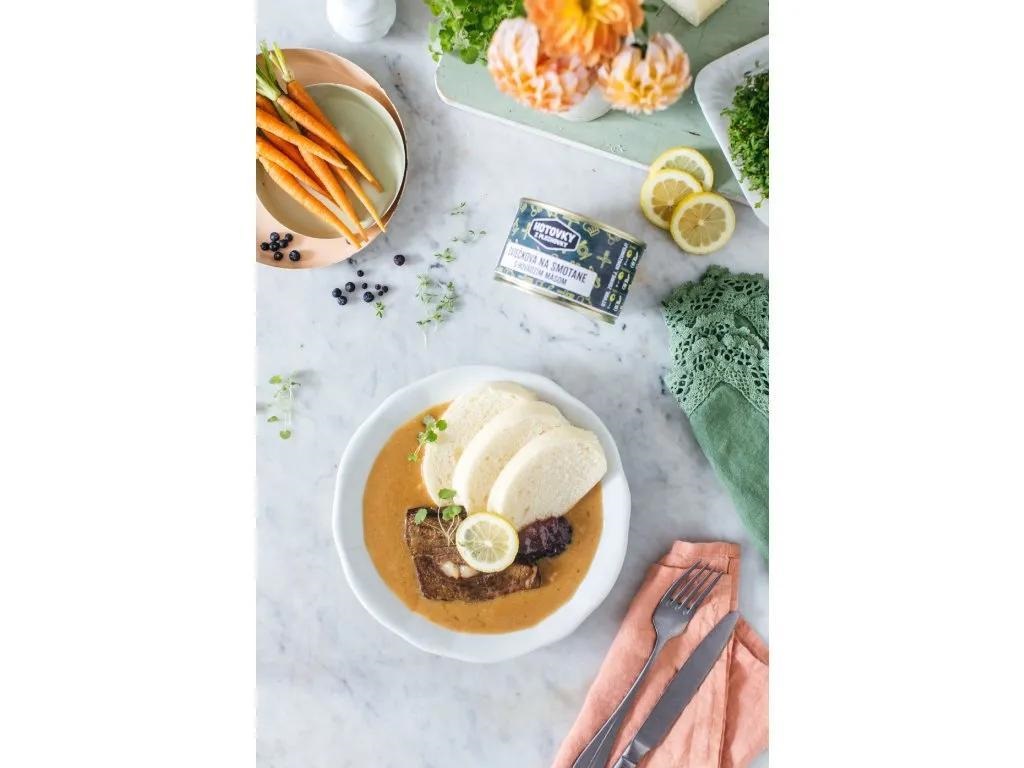 Sos de legume cu smântână și carne de vită 400g de la producătorul Hotovky z plechovky. Alimentele au o valoare nutrițională echilibrată, prepararea lor durează doar câteva minute și se consumă direct din conservă, farfurie sau alt vas. Ideal pentru drumeții mai lungi, camping, pescuit, vânătoare și activități similare. În rucsac ocupă foarte puțin spațiu.