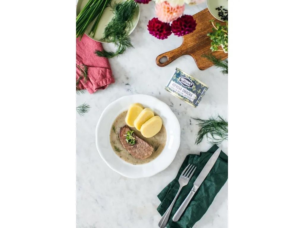 Sos de mărar cu carne de vită Lactofree 400g de la producătorul Hotovky z plechovky. Alimentele au o valoare nutritivă echilibrată, prepararea lor durează doar câteva minute și se consumă direct din conservă, farfurie sau alt vas. Ideal pentru drumeții mai lungi, camping, pescuit, vânătoare și activități similare. În rucsac ocupă foarte puțin spațiu.