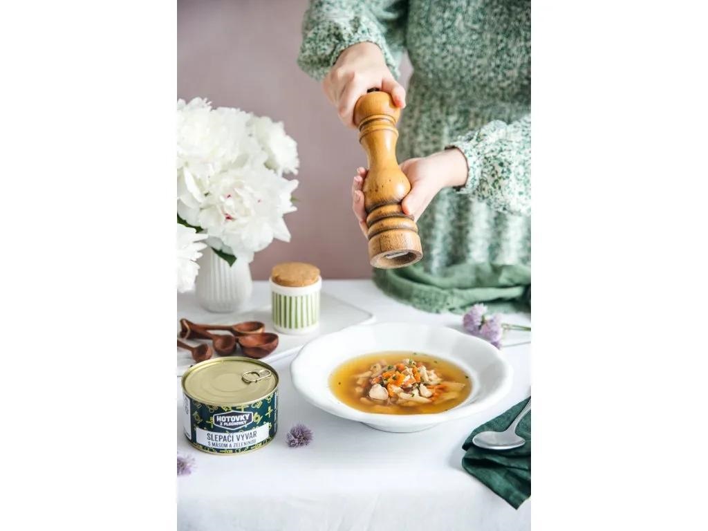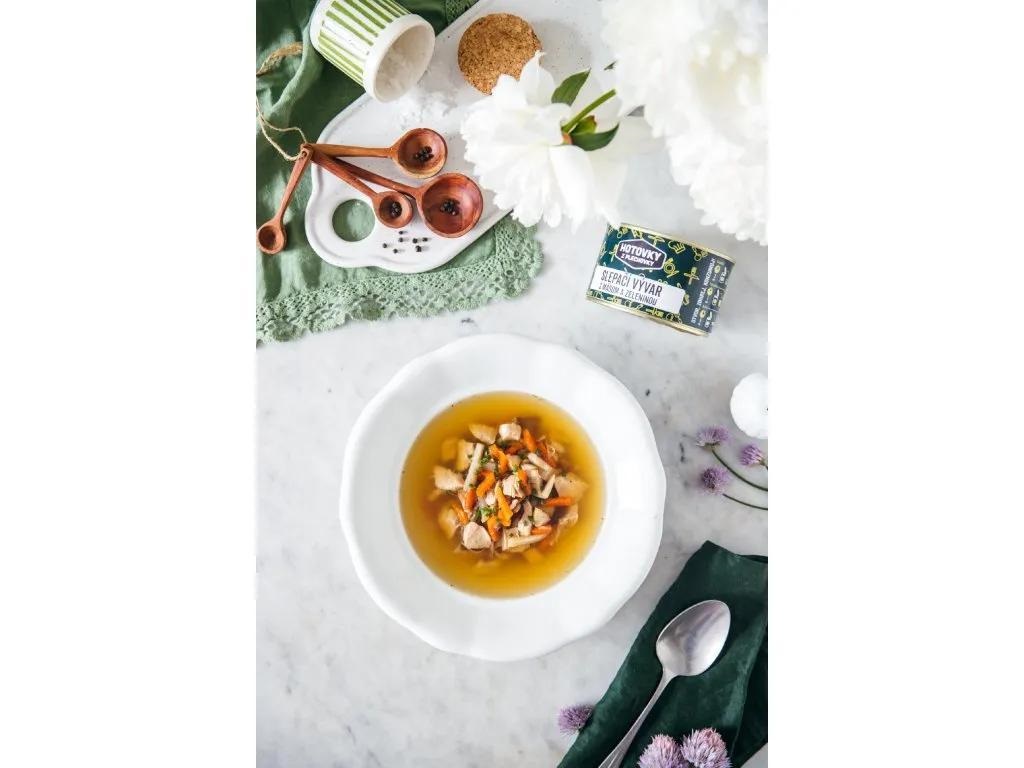 Supă de găină cu carne și legume 400ml de la producătorul Hotovky z plechovky. Alimentele au o valoare nutrițională echilibrată, prepararea lor durează doar câteva minute și se consumă direct din conservă, farfurie sau alt vas. Ideal pentru drumeții mai lungi, camping, pescuit, vânătoare și activități similare. În rucsac ocupă foarte puțin spațiu.