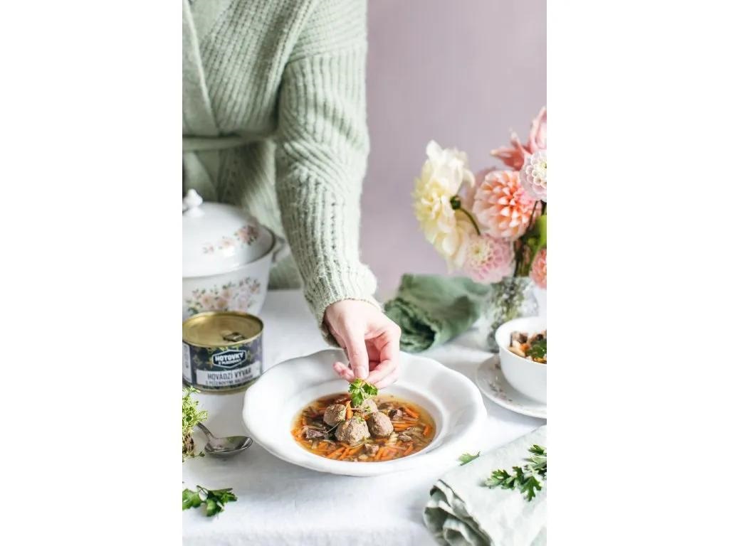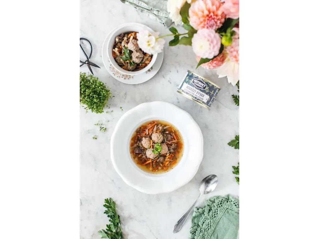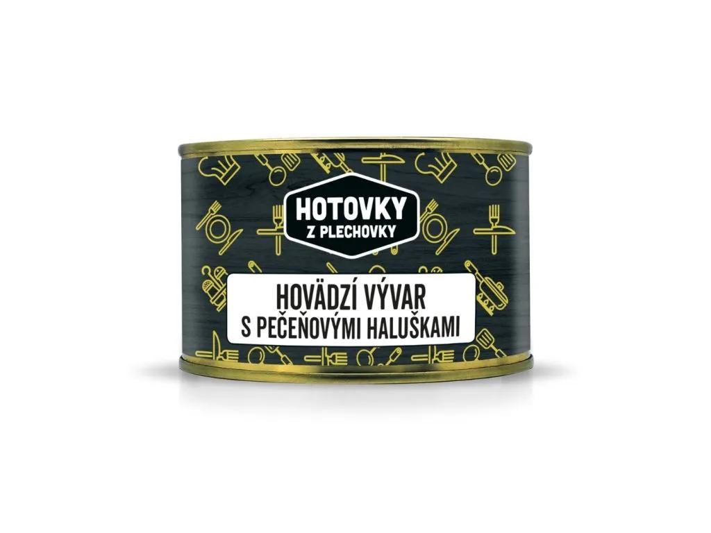 Supă de vită cu găluște de ficat 400ml de la producătorul Hotovky z plechovky. Alimentele au o valoare nutrițională echilibrată, prepararea lor durează doar câteva minute și se consumă direct din conservă, farfurie sau alt vas. Ideal pentru drumeții lungi, camping, pescuit, vânătoare și activități similare. În rucsac ocupă foarte puțin spațiu.