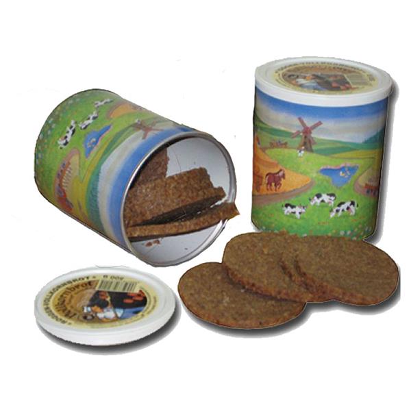 Trvanlivé pečivo v praktickom cestovnom balení v plechovke. Vhodné na viacdňové pobyty v prírode, survival akcie a pod. Ide o ľahko dostupný a už nakrájaný chlieb vyrobený z kvalitnej celozrnnej žitnej múky.