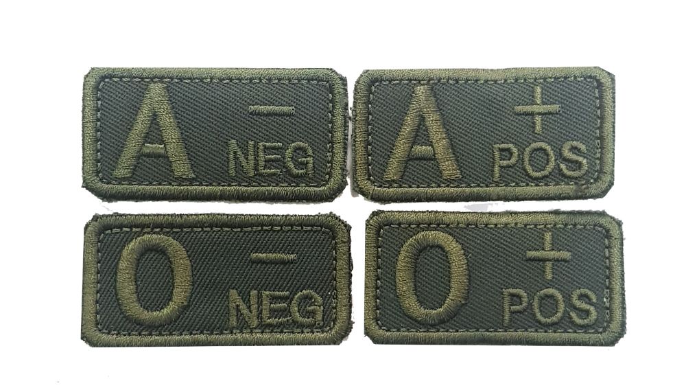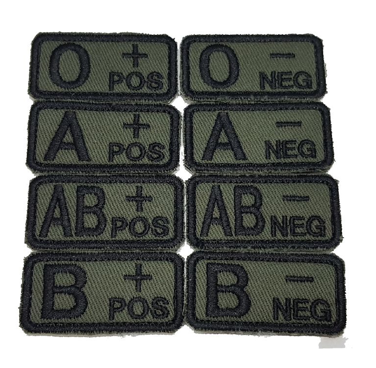 Patch grupă sanguină în culoarea olive. Patch-ul se fixează cu ajutorul unui scai pe panoul velcro, care se află pe bluza, geaca, șapca, rucsacul sau pe diverse alte accesorii tactice.