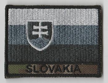 Patch OSSR în dimensiuni oficiale, cu prindere pe velcro. Steagul Slovaciei cu inscripția SLOVAKIA pe imprimeul model 2007 camuflaj digital pădure, cu culori estompate ale steagului.
