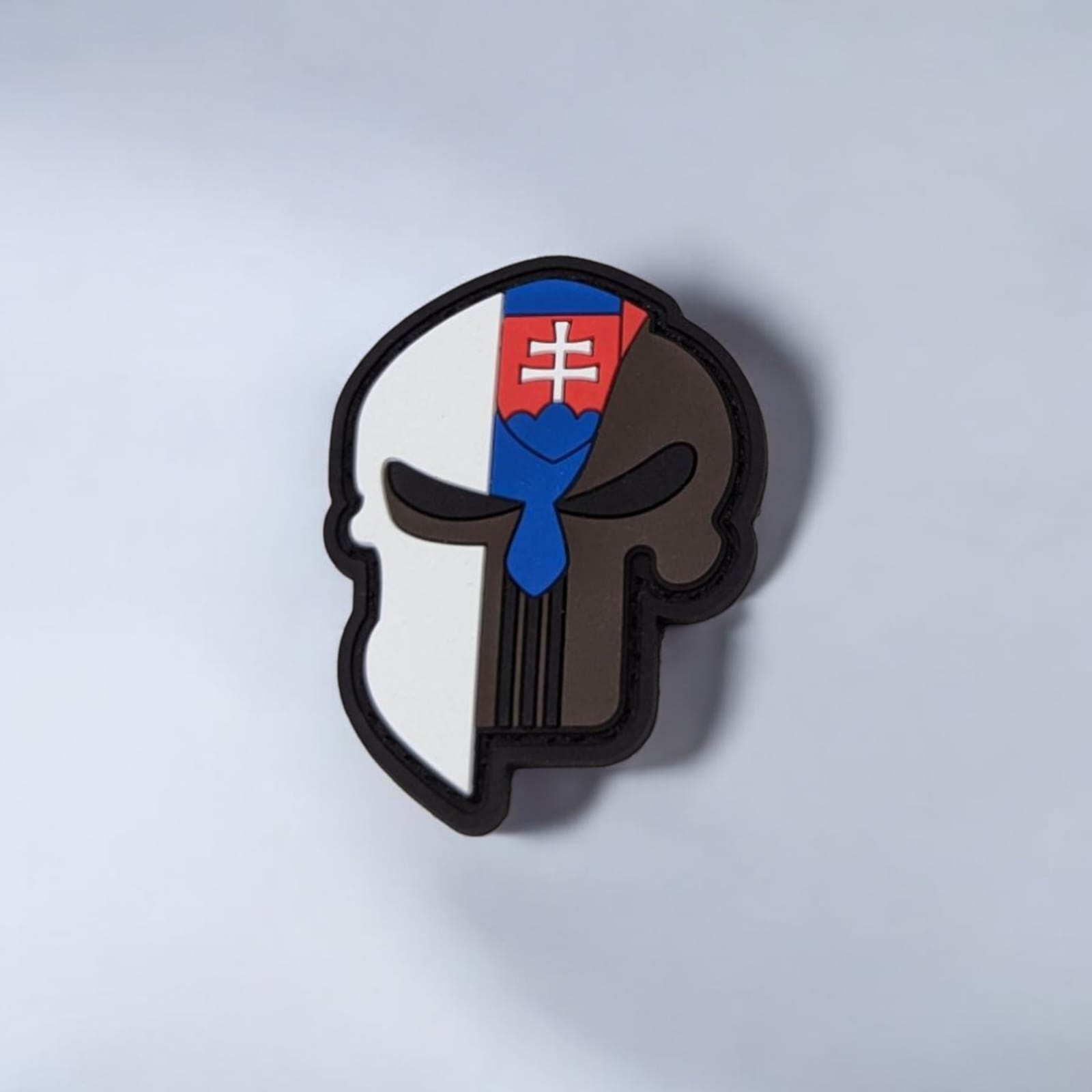 Patch PVC de calitate Skull în culorile steagului Slovaciei. Potrivit pentru șepci, rucsacuri, jachete, hanorace sau alte echipamente cu panouri velcro.