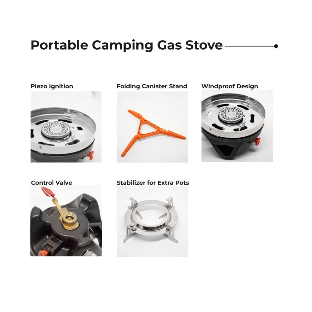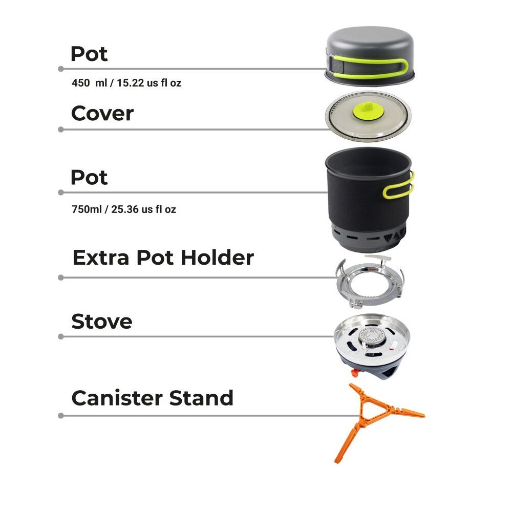 Arzătorul de camping Adimanti este conceput pentru a vă oferi mai mult confort în timpul activităților în aer liber. Setul complet include două vase de gătit, un capac din plastic, un arzător pe gaz, un adaptor de conexiune între arzător și vas, un suport cu trei picioare pentru stabilizarea cartușului de gaz, precum și un săculeț textil practic pentru transport și depozitare.