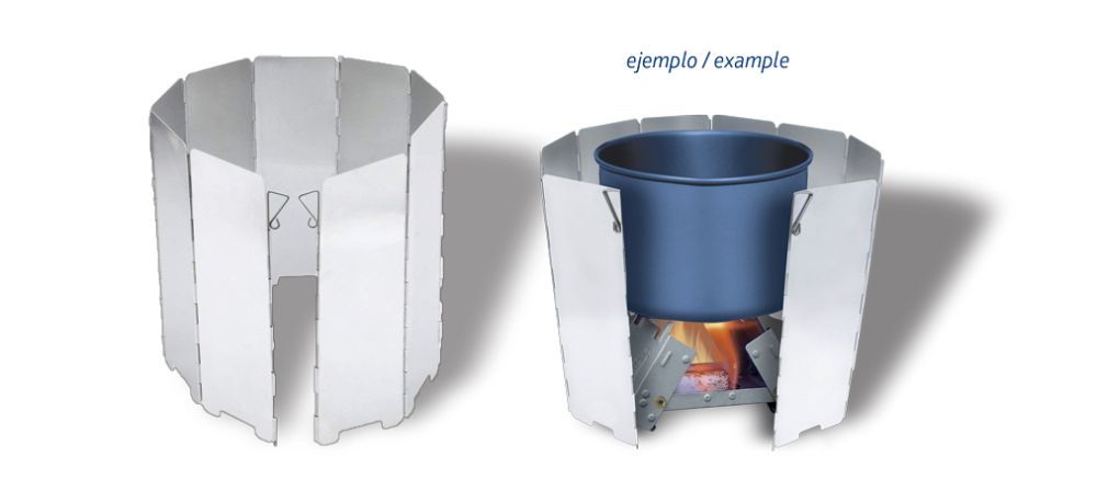 Paravan conceput pentru utilizarea cu arzătoare de camping, pentru o gătire mai eficientă în condiții de vânt.