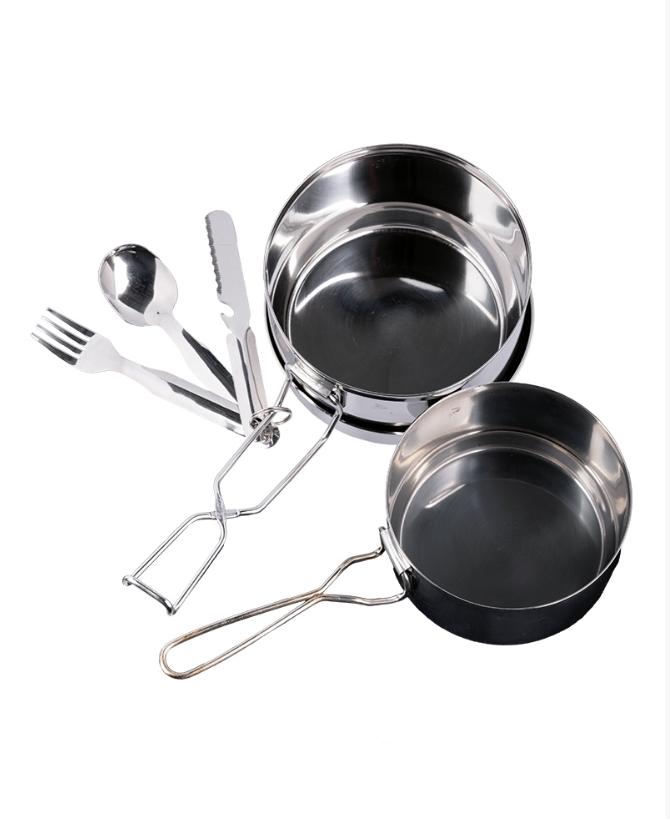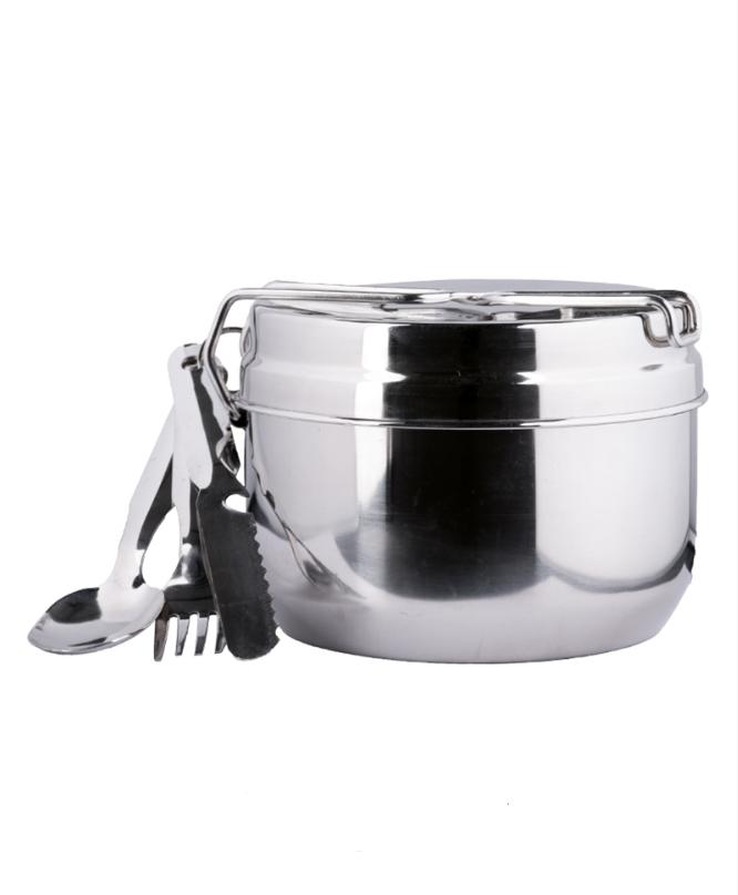 Gamela militară din inox utilizată de Armata Republicii Cehe, cu tacâmuri