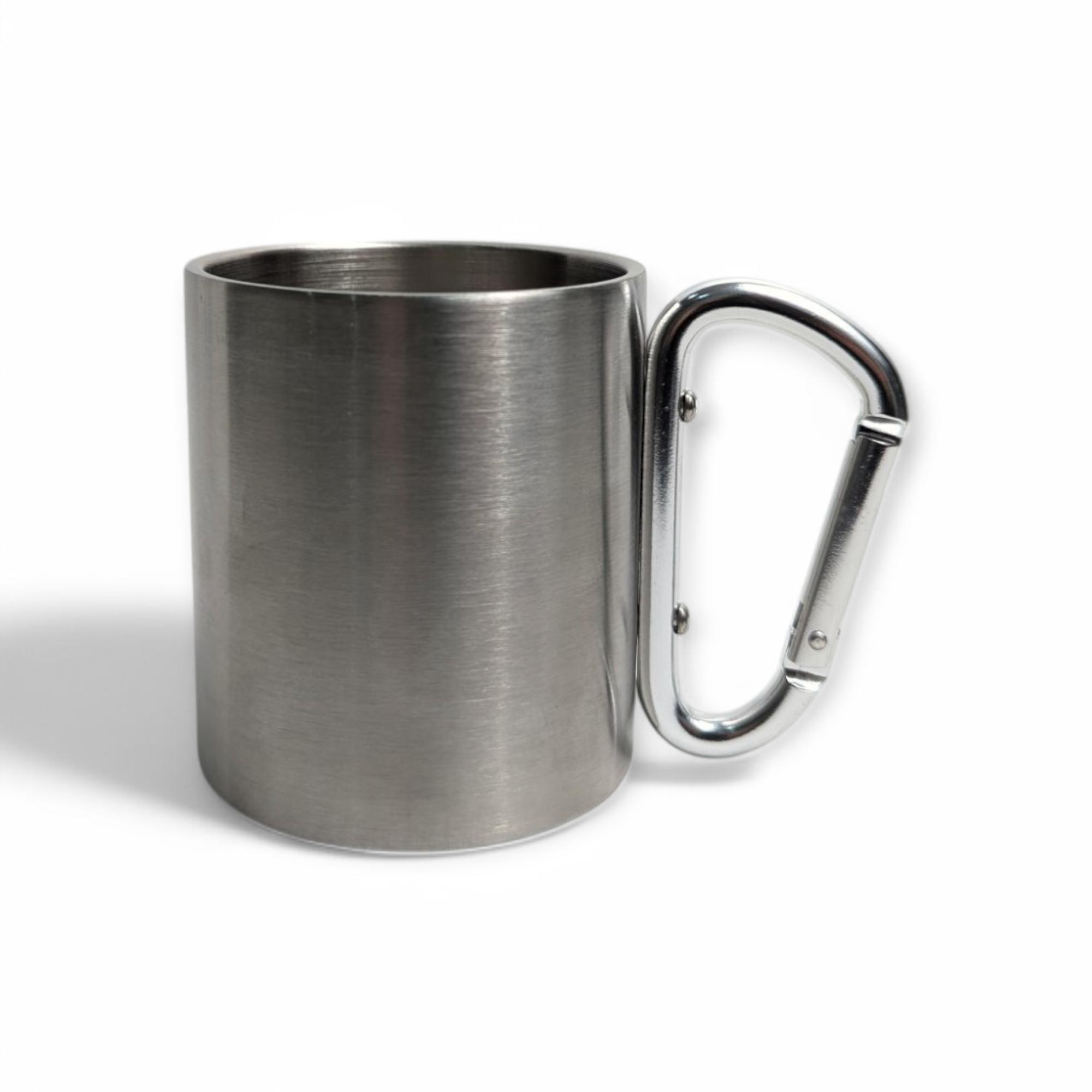 Pahar din inox cu mâner practic. Este fabricat din oțel inoxidabil rezistent. Mânerul este sub formă de carabinieră, ceea ce permite atașarea rapidă și ușoară de bagaj.