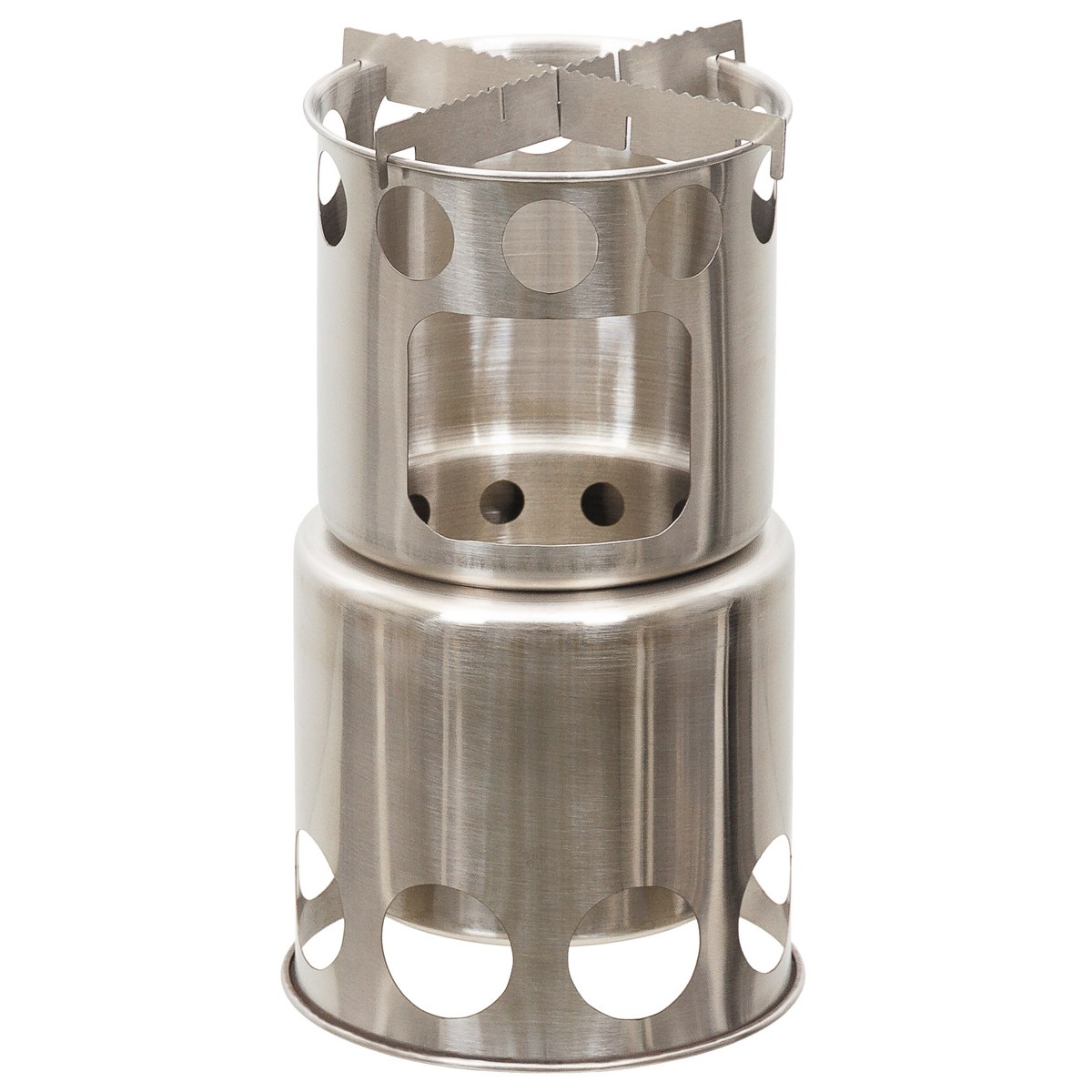 Este un set complet din oțel inoxidabil pentru gătit, care include o sobă, o tigaie mică și o cană.