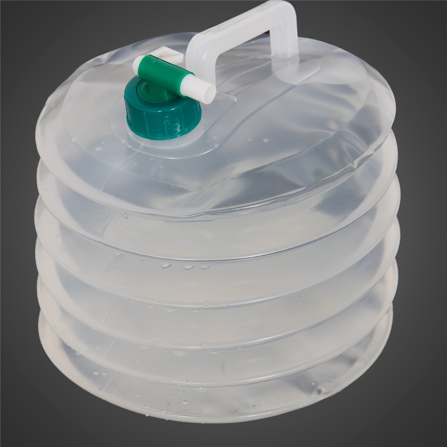 Bidon pliabil din plastic pentru apă. Include un robinet cu ajutorul căruia puteți deschide ușor capacul și, de exemplu, să vă spălați mâinile în natură etc.
