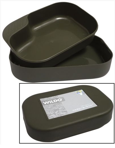 Set de masă pentru camping de la producătorul suedez Wildo®. Conține două boluri care pot fi pliate unul în celălalt. Interiorul poate fi umplut cu tacâmuri, o cană pliabilă sau orice altceva de care aveți nevoie să transportați.