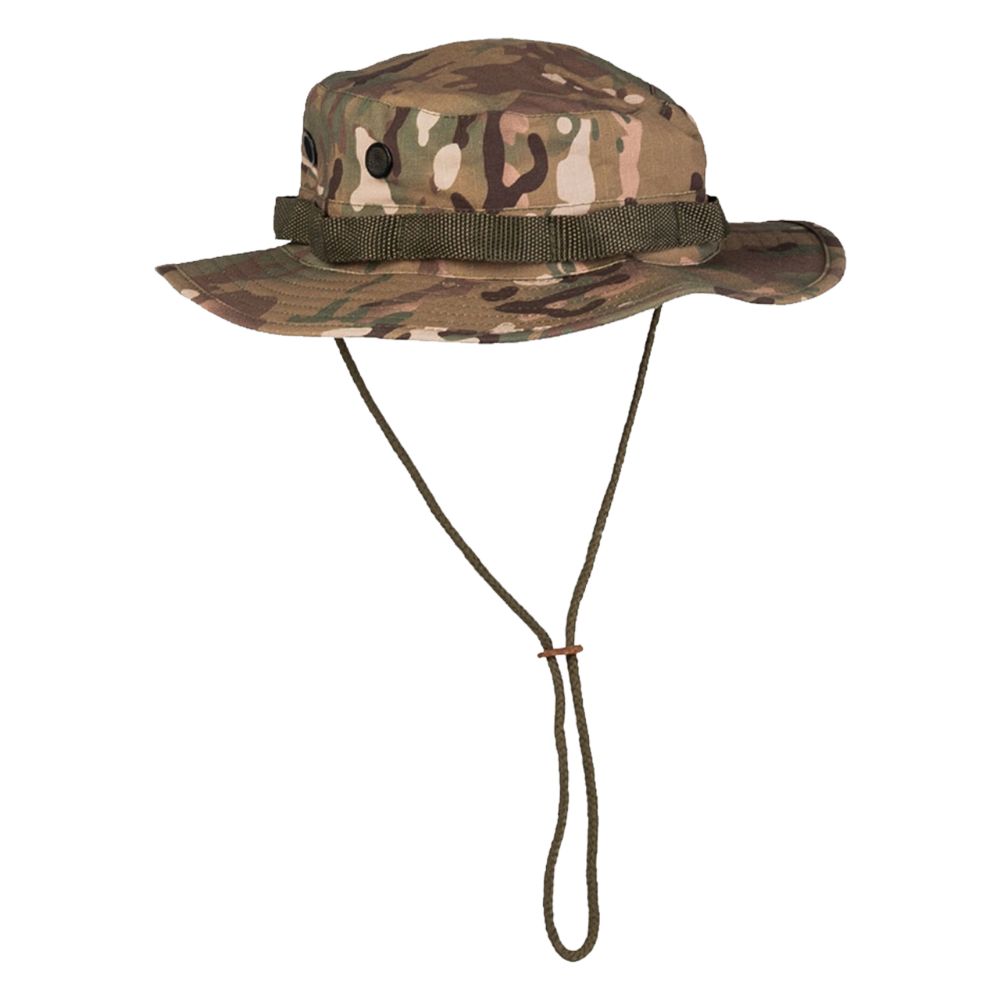 Boonie klobúk značky Mil-Tec. Klobúk je v multi-terénnom maskovacom vzore. Klobúk obsahuje vetracie otvory aj sťahovaciu šnúru.