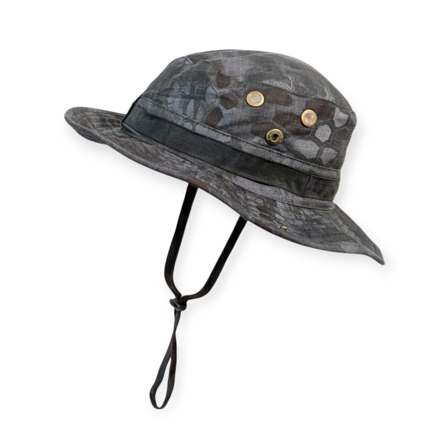 Pălăria este prevăzută cu orificii de aerisire și benzi de prindere dispuse pe circumferință, care permit atașarea accesoriilor mici. Pentru a schimba forma pălăriei, este suficient să fixați părțile laterale. Datorită șnurului ajustabil, aceasta va rămâne fixă pe cap chiar și în condiții de vânt.