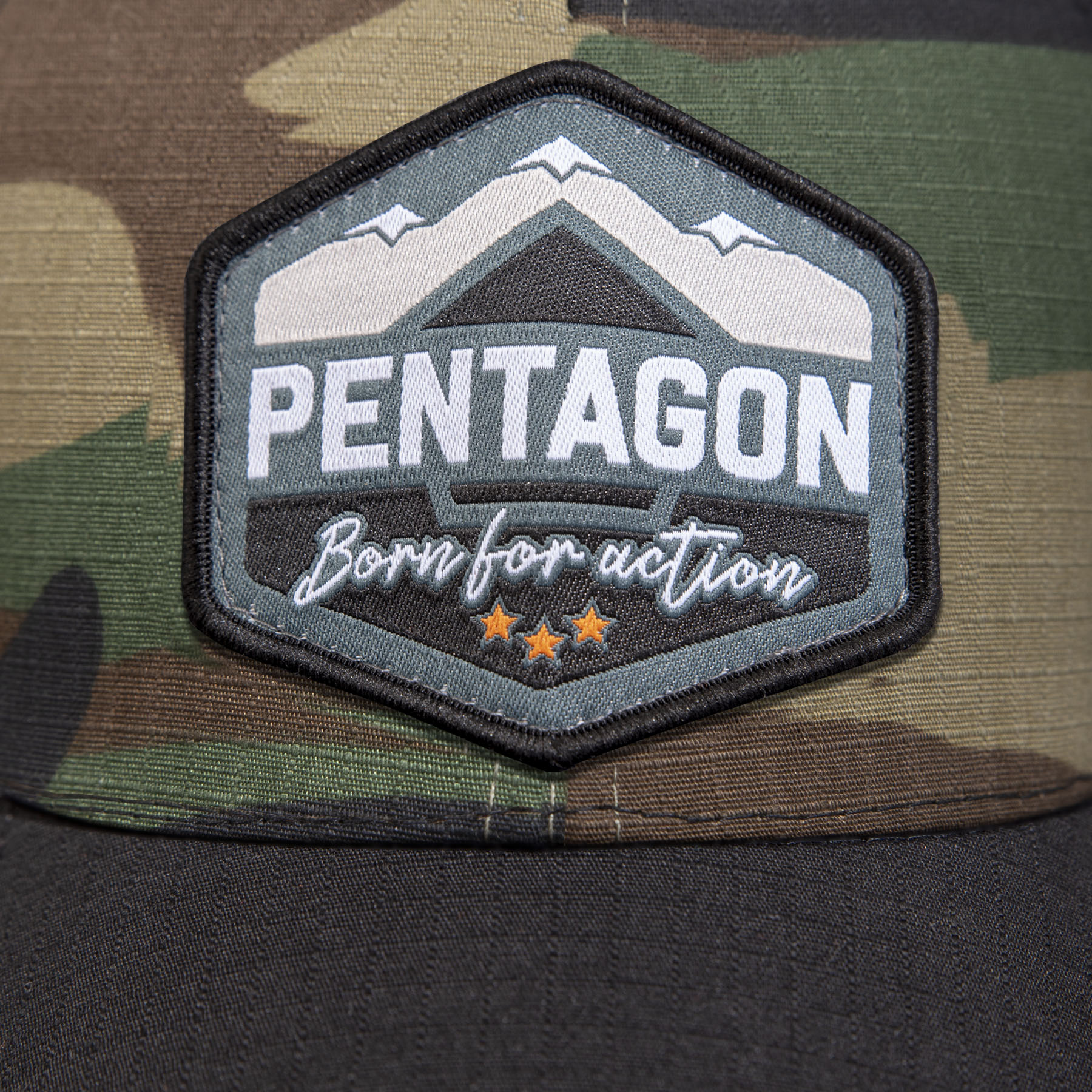 Șapcă modernă de la producătorul Pentagon, care se potrivește excelent și poate fi asortată aproape la orice ținută. Model cu motiv Born For Action, cu logo aplicat în partea frontală.