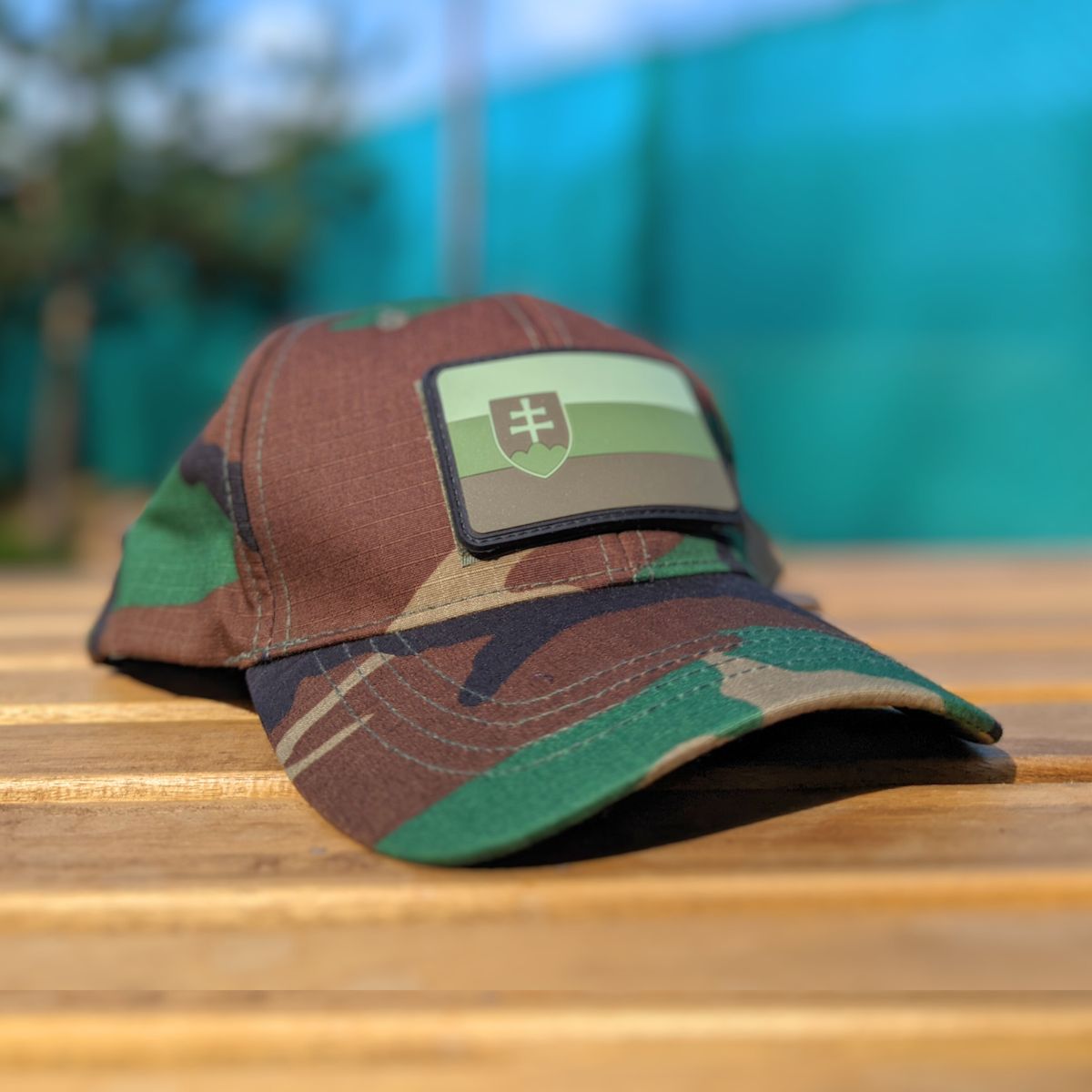 Șapcă tactică în variantă Rip/Stop cu 3 panouri velcro. Panoul principal din partea frontală dispune de un patch detașabil cu steagul Republicii Slovace, proiectat în culori potrivite pentru echipamentul de camuflaj în nuanțe de pădure.